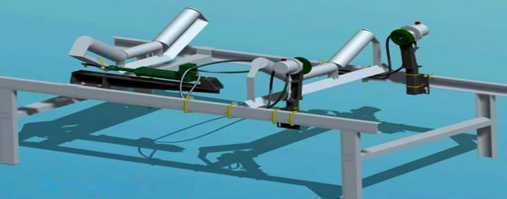 液壓糾偏裝置作用在上、下調心托輥上,皮帶跑偏時主動調整糾偏拖輥角度校正皮帶,不但可省掉立輥保護皮帶邊緣不受立輥摩擦損傷,而且快速校正皮帶。 自動檢測跑偏并予以校正,使皮帶始終處于合理狀態運行,對皮帶機安裝不當、運轉失靈、物料沖擊、負荷變化、皮帶斷面間伸長率不均勻造成皮帶跑偏有很好的調整作用。