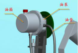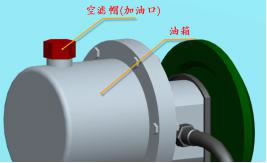 8.加油: 所有部件安裝完畢后就開始給系統加油,加油時擰下空濾帽,空濾帽位置如圖所示,通過油位計觀察其油位,加油至油箱的4/5處即可;